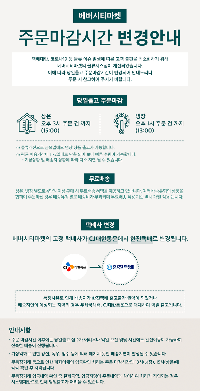 | 배송기간 | ㆍ도서산간 지역 등은 배송에 3-5일이 더 소요될 수 있습니다. - 천재지변, 물량 수급 변동 등 예외적인 사유 발생 시, 다소 지연될 수 있는 점 양해 부탁드립니다. | ||