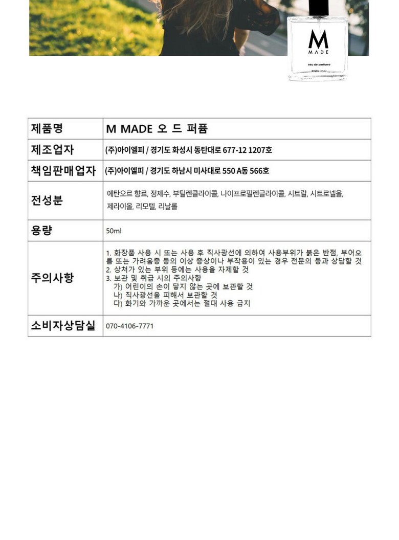 | 용량(중량) | 50ml | 제품 주요 사양 | 오 드 퍼퓸 |