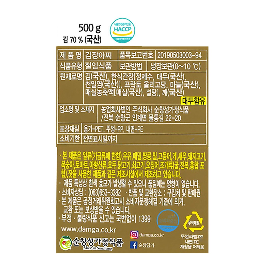 | 제품명 | 김장아찌 | 식품의 유형 | 절임식품 |