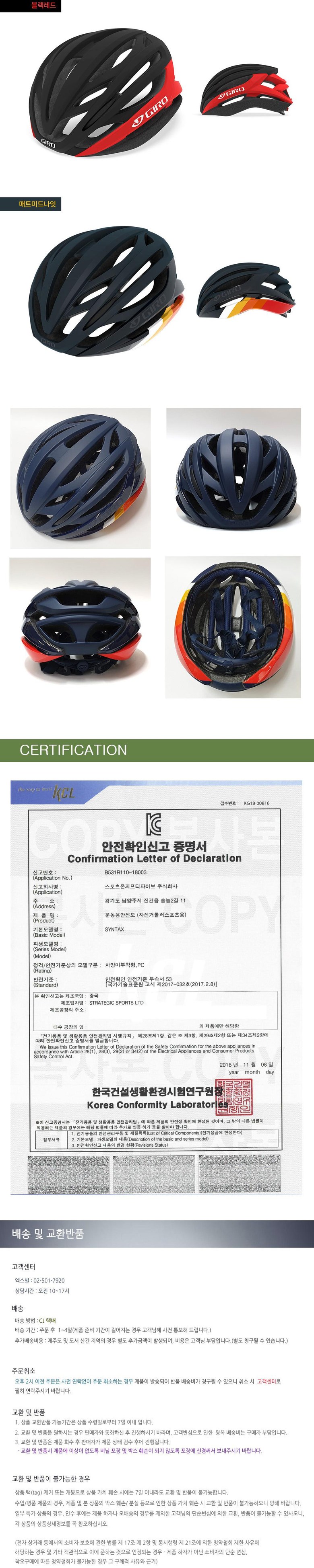 | 품명 및 모델명 | 지로 신텍스 아시안핏 헬멧 | KC 인증정보 | 상품이 KC 대상인 경우, 본품 및 구성품 모두 인증번호 또는 인증번호가 없는 경우 KC 마크 여부를 기재해주세요. (대상이 아닌경우 "해당없음" 기재) |