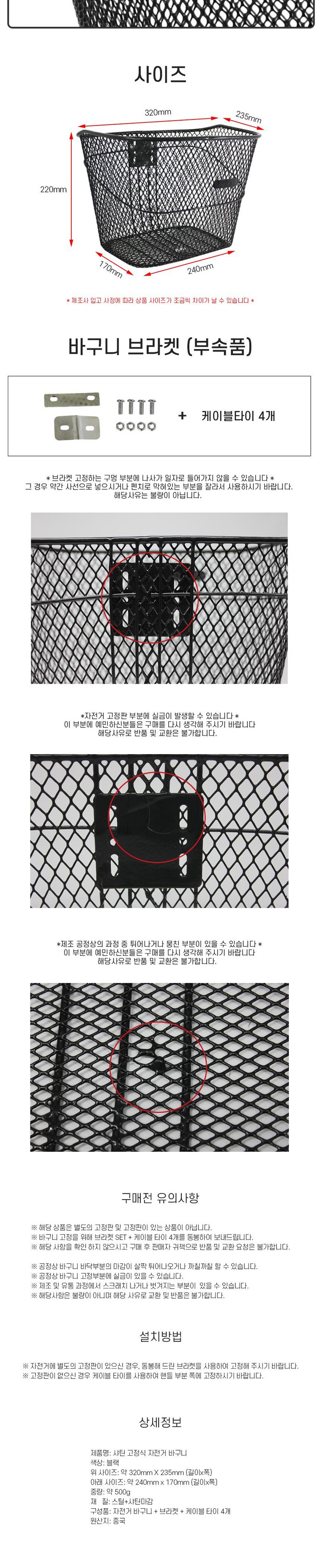 ※ "자전거 바구니 고정형 + 브라켓 1세트 + 케이블타이 4개" 발송되는 상품 입니다※