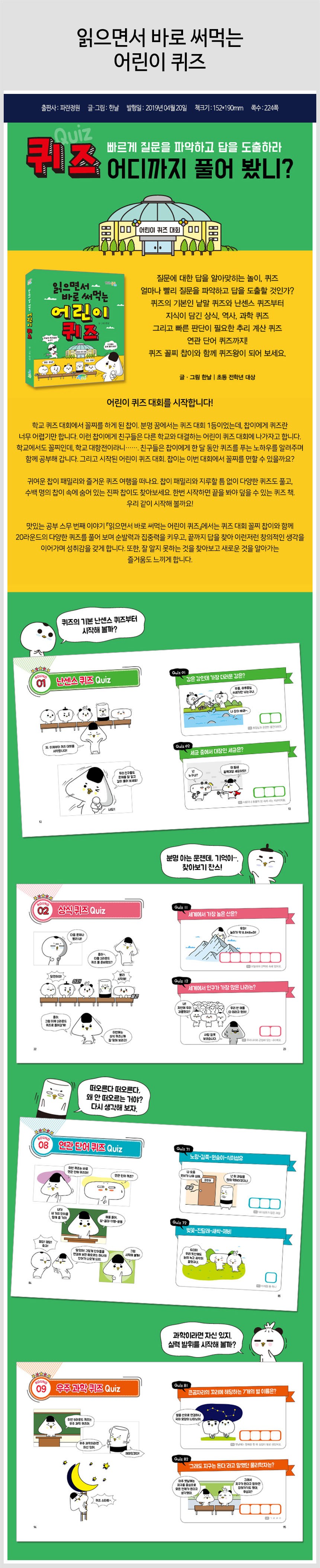 | 도서명 | 읽으면서 바로 써먹는 어린이 퀴즈 | 저자, 출판사 | 한날, 파란정원 |