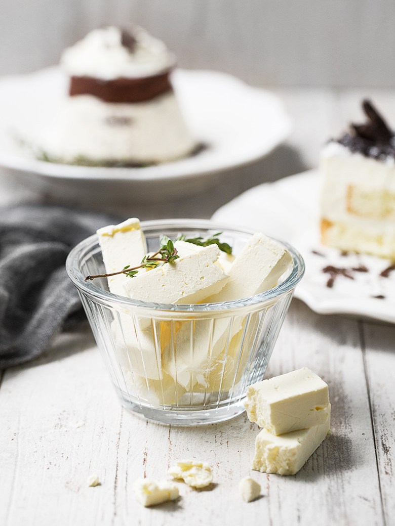 재료: 생크림 100ml, 무염버터 70g, 크림치즈 150g, 달걀노른자 2개, 달걀흰자 3개, 옥수수 전분 40g, 설탕 60g, 비스킷 8개