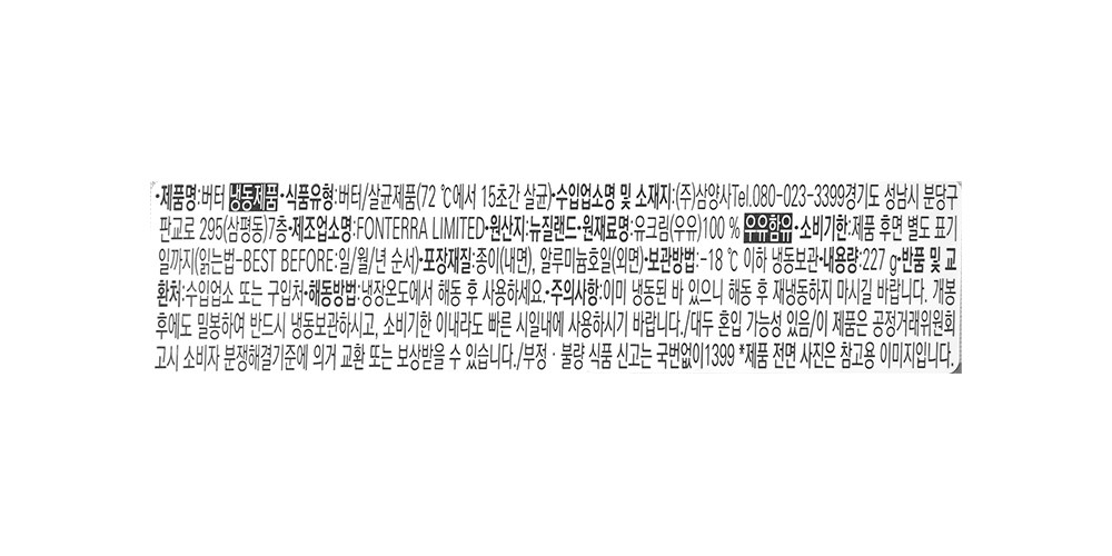 | 해당 상품에 함유된 나트륨은 원유에서 기인한 것으로, 본 상품은 별도의 소금을 첨가하지 않은 무가염 버터입니다. |