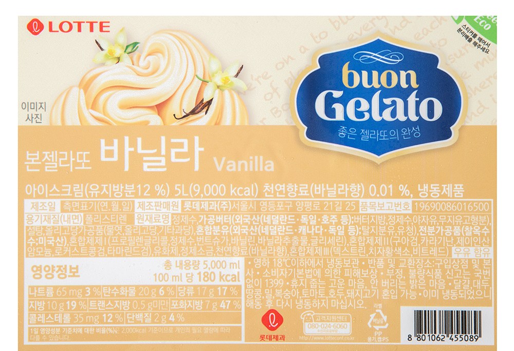 | 제품명 | 본젤라또 바닐라 | 식품의 유형 | 컨텐츠 참조 |
