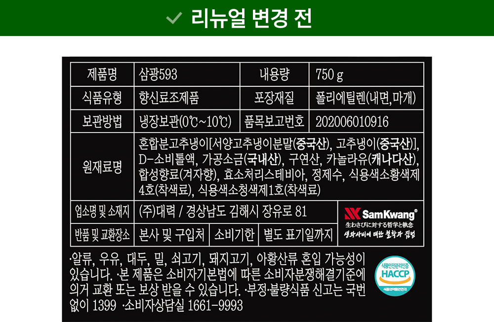 | 제품명 | 삼광593 | 식품의 유형 | 컨텐츠 참조 |
