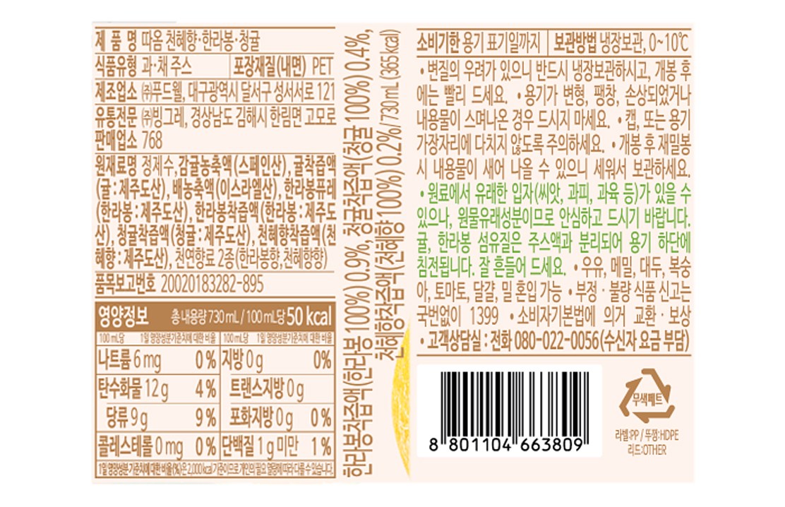 - 주스 종류: 감귤/한라봉