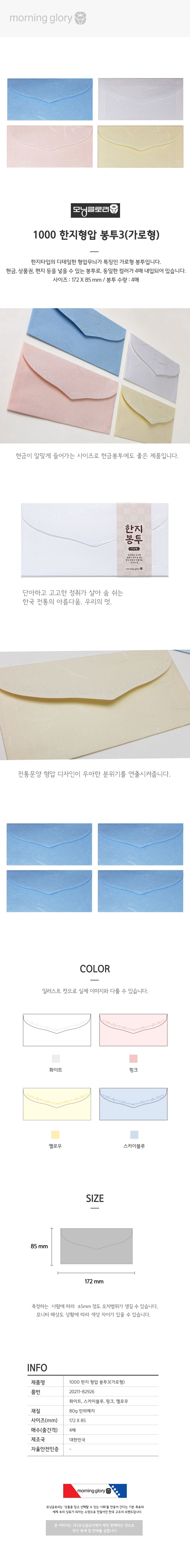 | 품명 및 모델명 | 1000 한지형압 용돈봉투 | 인증/허가 사항 | 해당없음 |