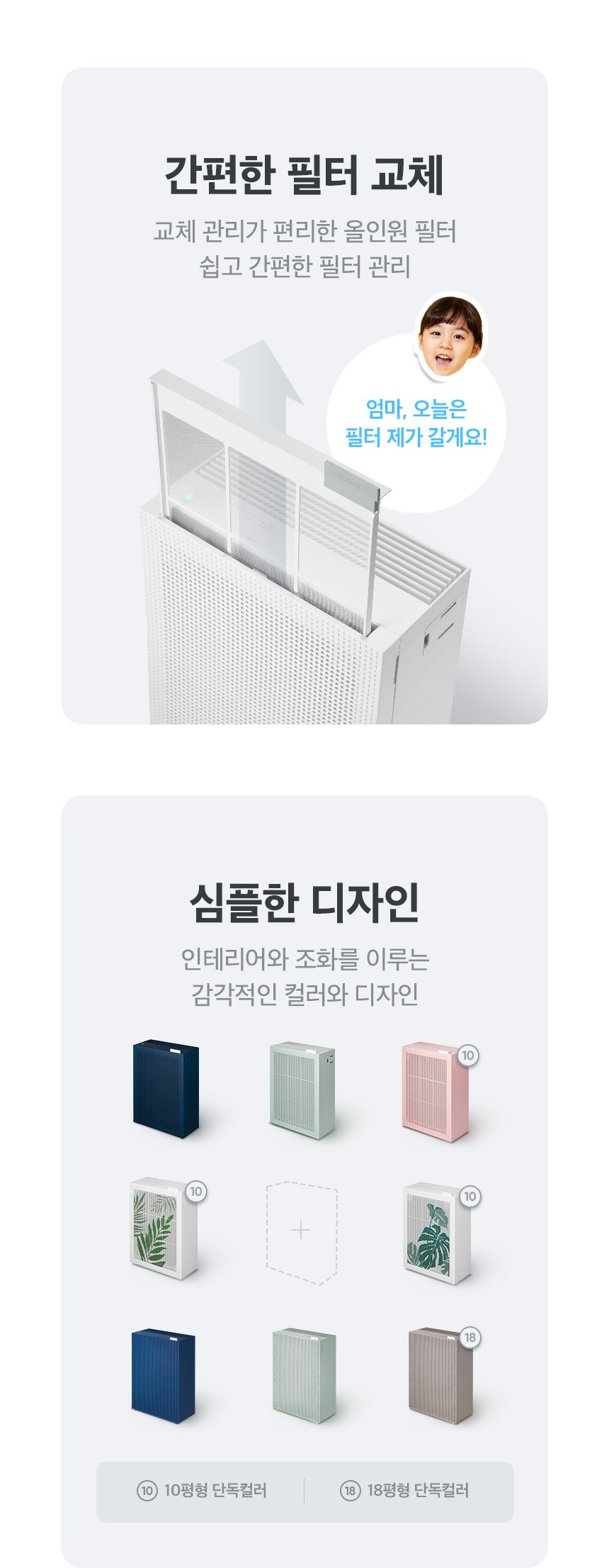 - 공기청정방식: 필터전용