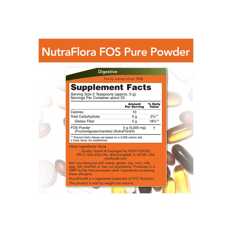 나우푸드 뉴트라 플로라 FOS 퓨어 파우더 글루텐 프리 비건