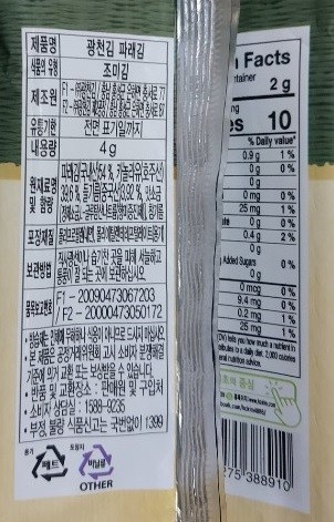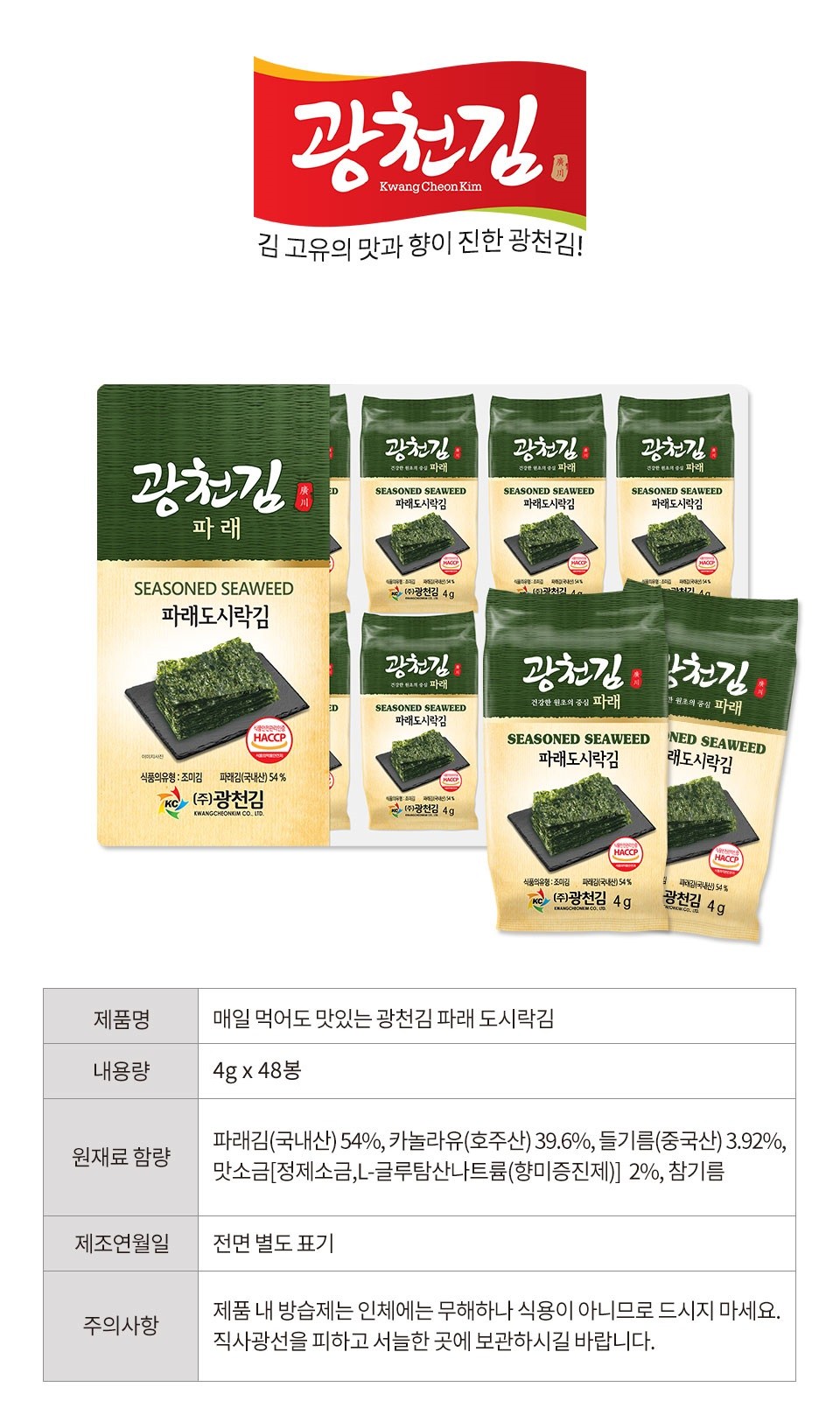 | 제품명 | 광천김 파래김 | 식품의 유형 | 조미김 |