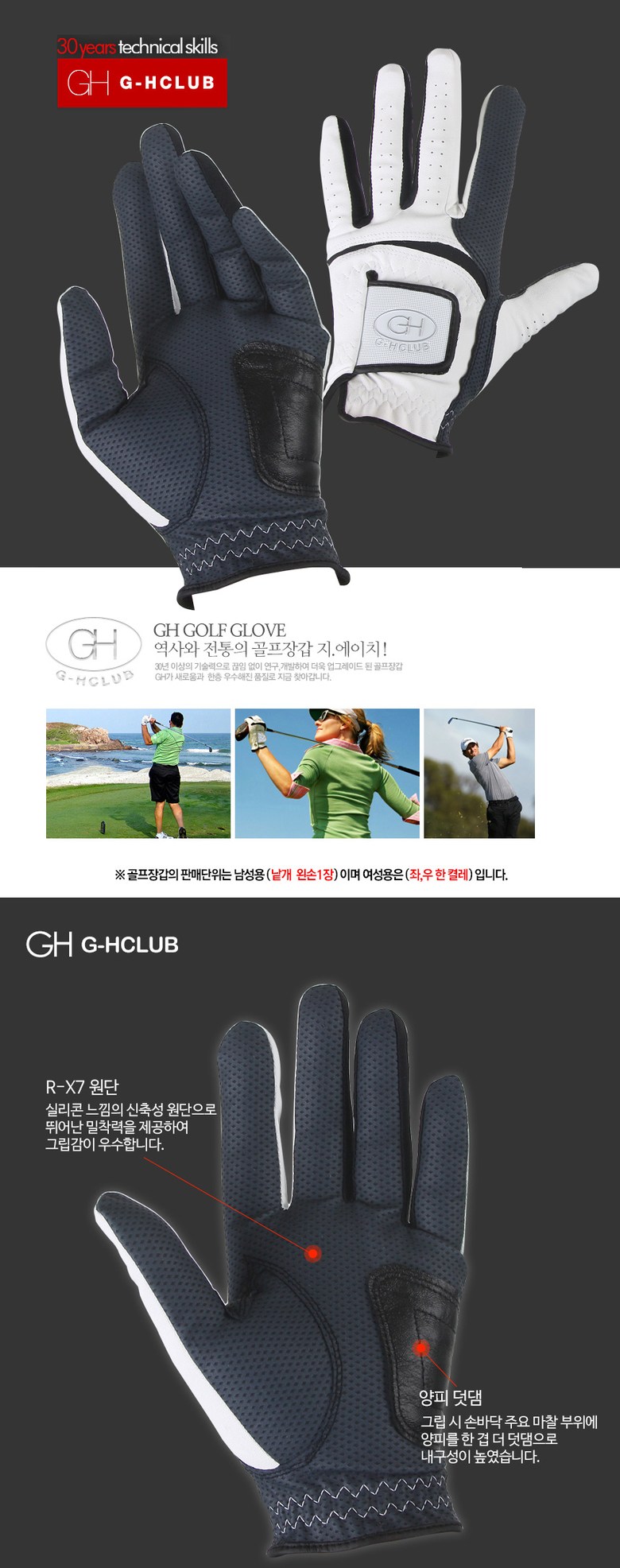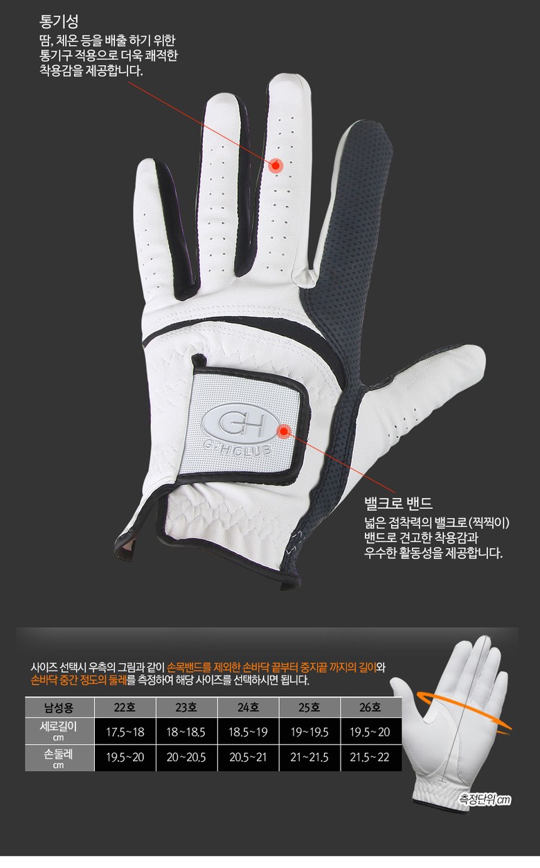 | 종류 | 기능성 골프장갑 | 소재 | 양피+특수합피 |