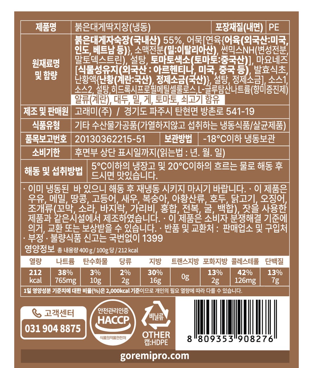 | - 냉동 보관(-18℃ 이하) | |
