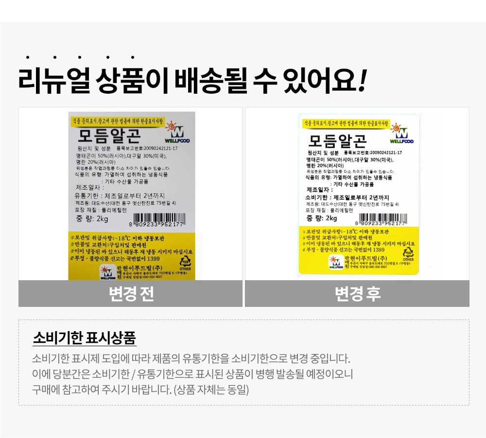 | 제품명 | 모듬알곤 | 식품의 유형 | 기타수산물가공품(가열하여 섭취하는 냉동식품) |