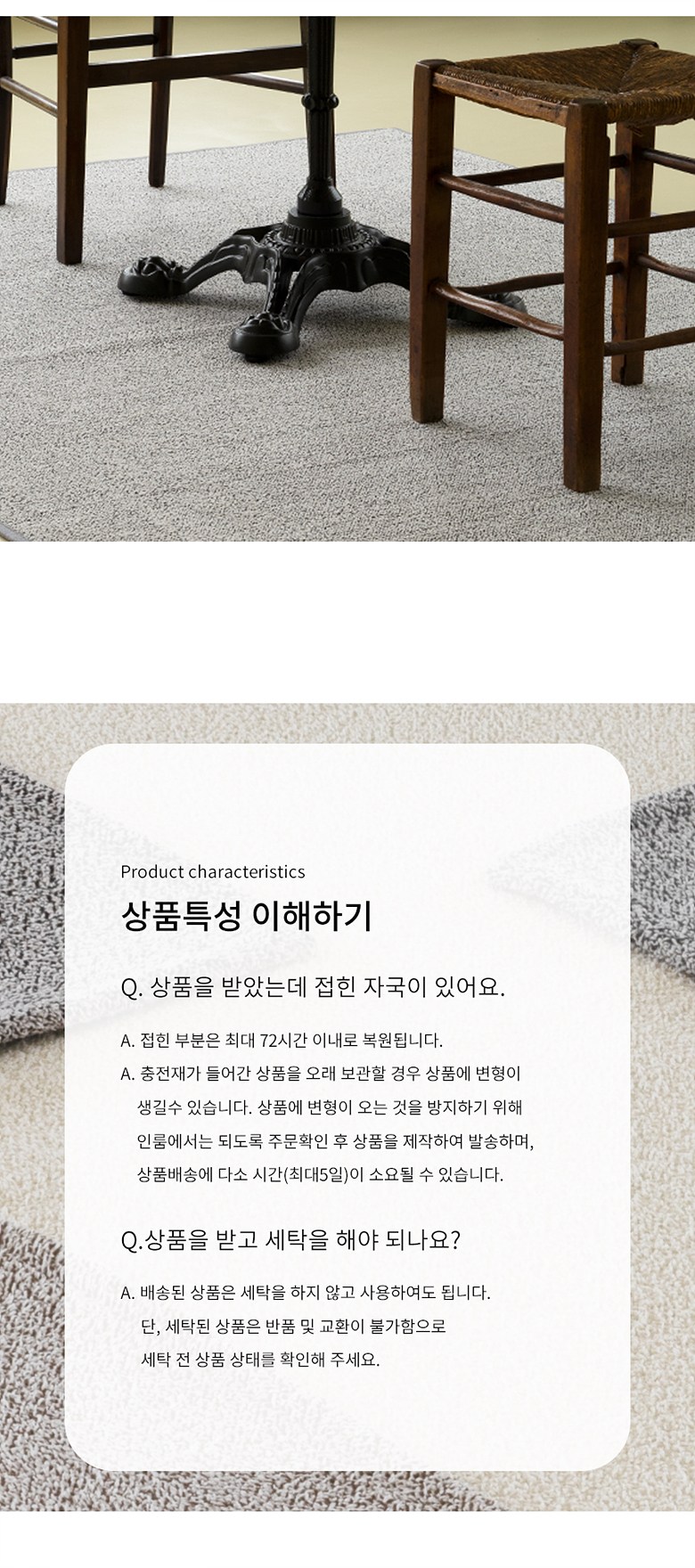 - ㆍ모니터 해상도의 차이로 인해 색상이나 이미지가 실제와 달라, 고객이 단순 변심으로 교환/반품을 무료로 요청하는 경우