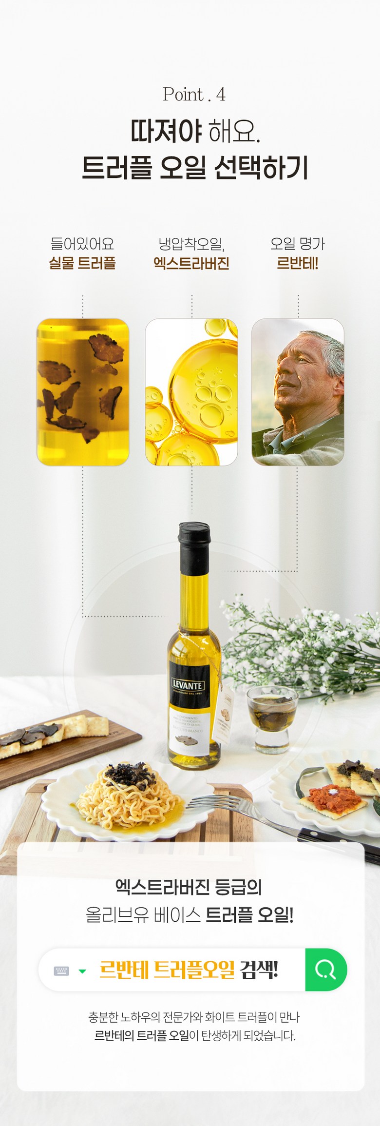 | 제품명 | 르반테 화이트 트러플오일 선물세트 | 식품의 유형 | 트러플오일 |