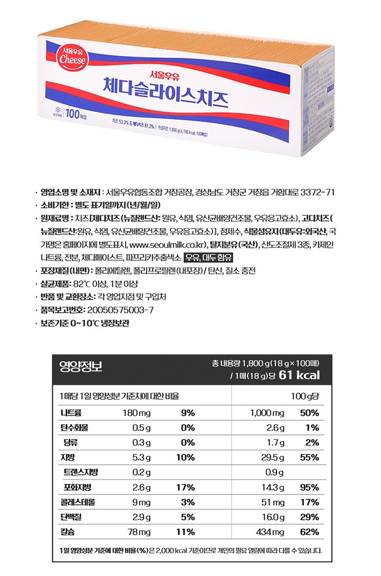 - 치즈 형태: 슬라이스