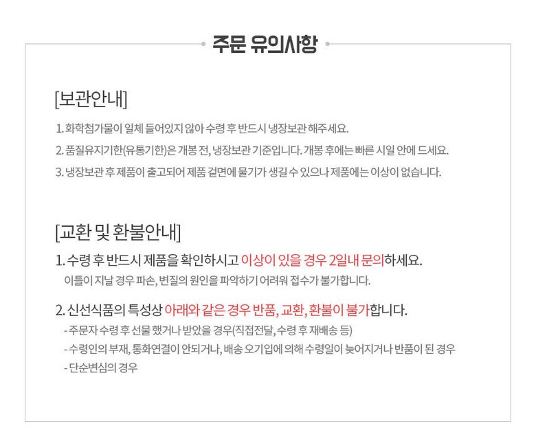 - ㆍ교환/반품에 관한 일반적인 사항은 판매자가 제시사항보다 관계법령이 우선합니다.
