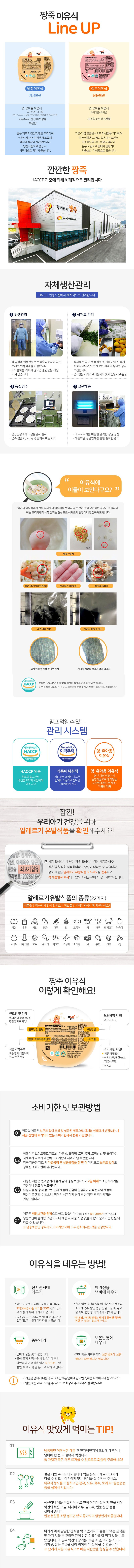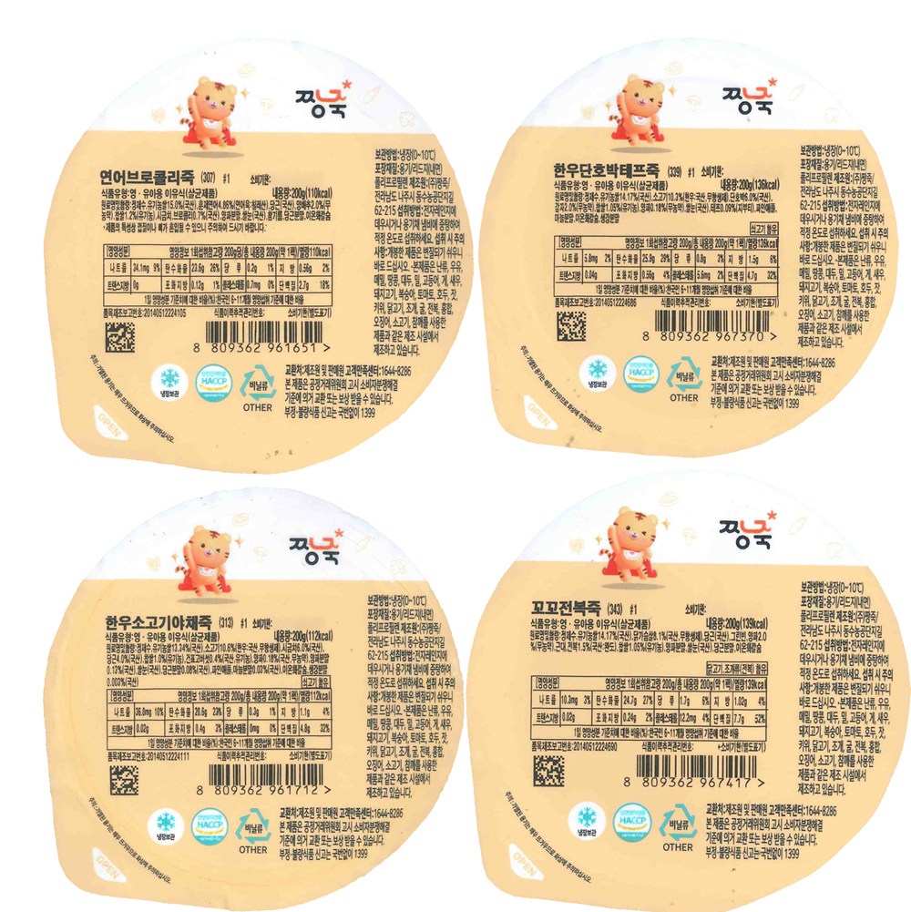 | 제품명 | 한우소고기야채죽, 꼬꼬전복죽, 연어브로콜리죽, 한우단호박테프죽 | 식품의 유형 | 컨텐츠 참조 |