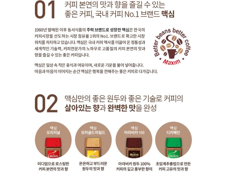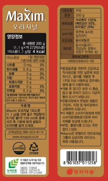 | 제품명 | Maxim 오리지날 | 식품의 유형 | 컨텐츠 참조 |