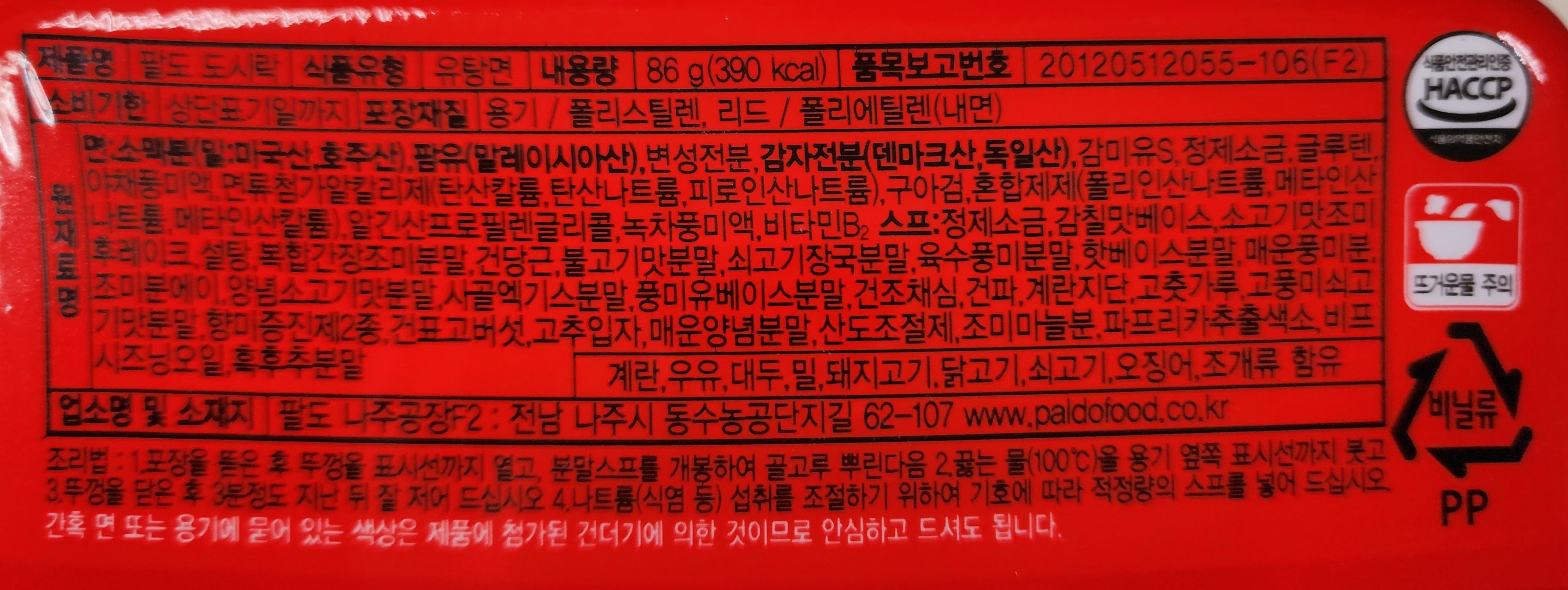 | 포장단위별 내용물의 용량(중량), 수량 | 86g x 5개 | 원재료명 및 함량 | 컨텐츠 참조 |