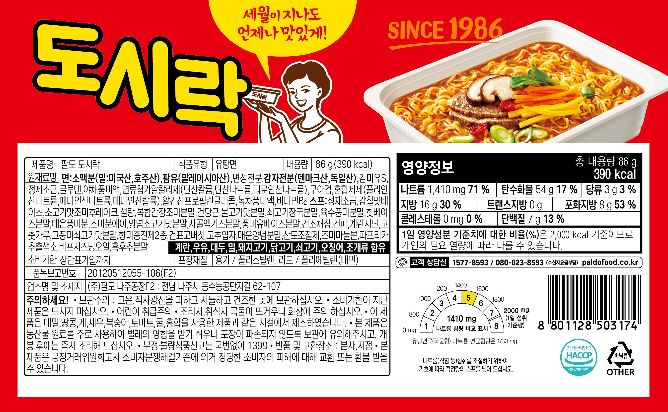 | 제품명 | 팔도 도시락 | 식품의 유형 | 컨텐츠참조 |