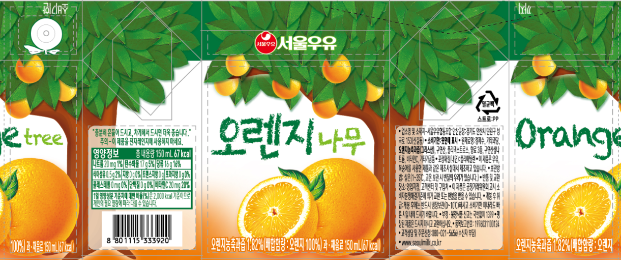 | 제품명 | 서울우유 오렌지나무 | 식품의 유형 | 과채음료 |