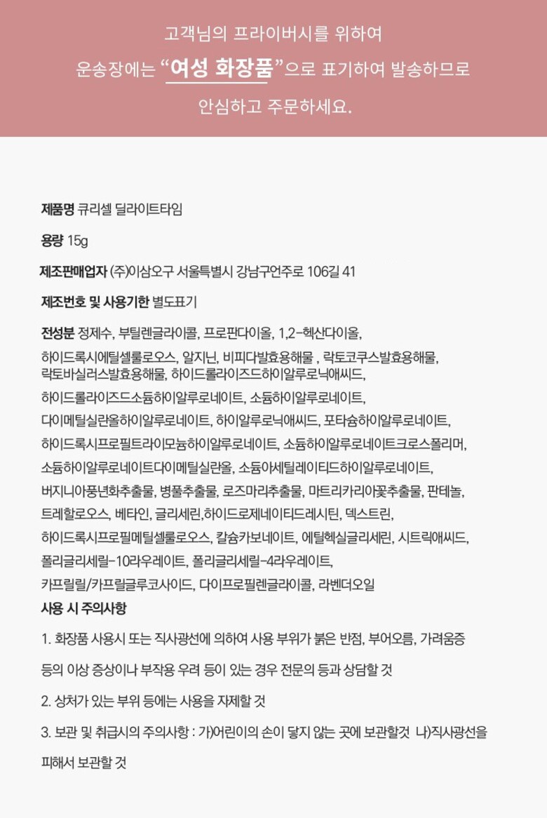 | 용량(중량) | 컨텐츠 참조 | 제품 주요 사양 | 모든 피부용 |