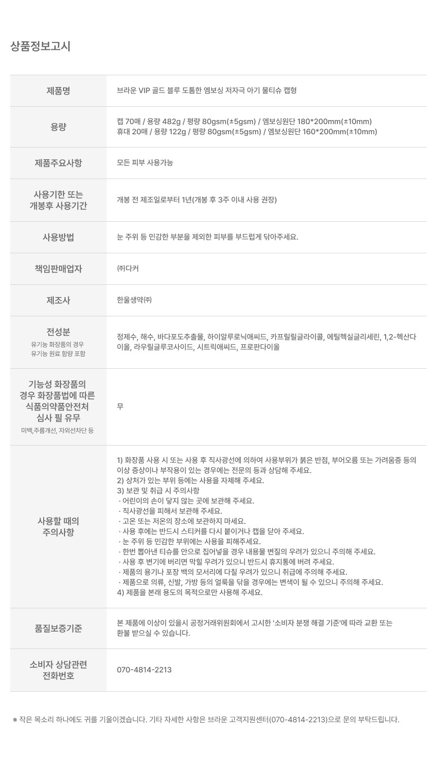 | 용량(중량) | 컨텐츠 참조 | 제품 주요 사양 | 모든 피부용 |