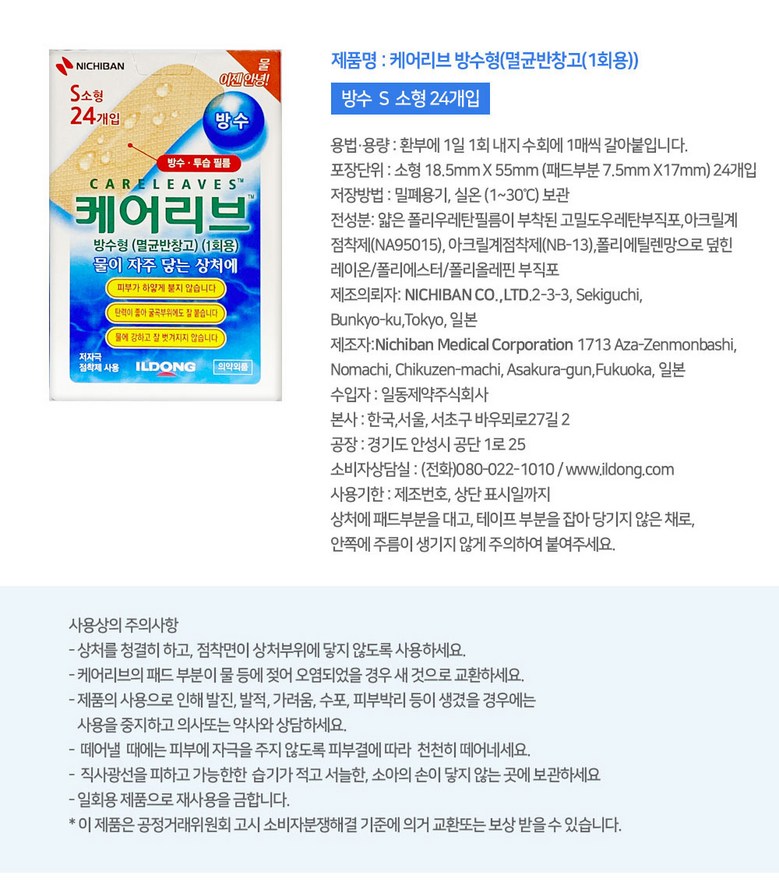 | 품명 및 모델명 | 상품 상세페이지 참조 | 인증/허가 사항 | 의약외품 |