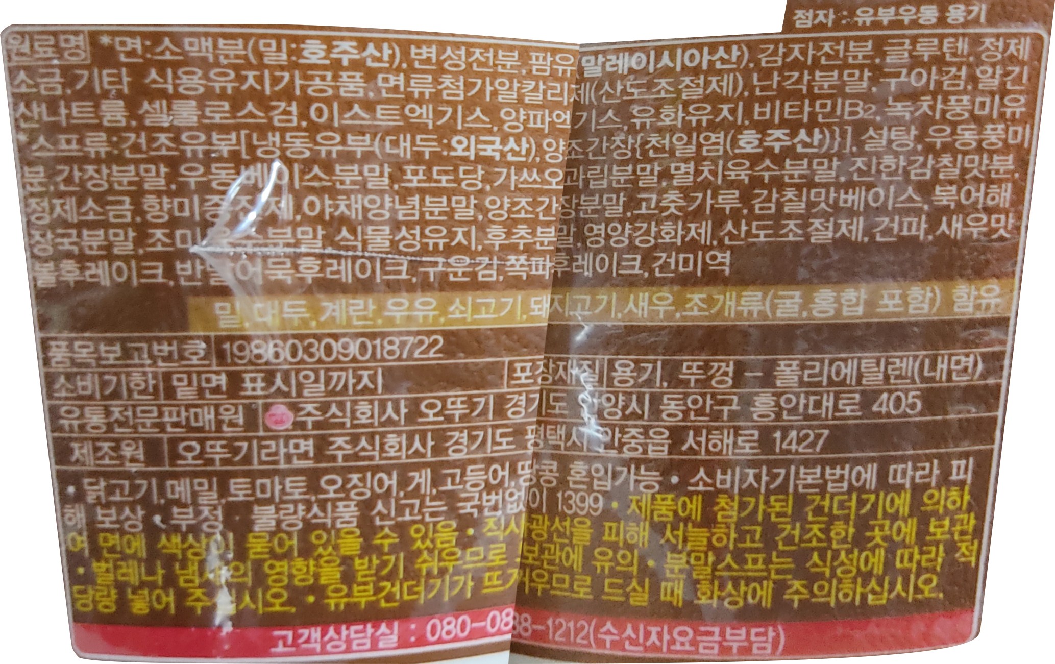| 제품명 | 유부우동 컵라면 | 식품의 유형 | 용기면류 |
