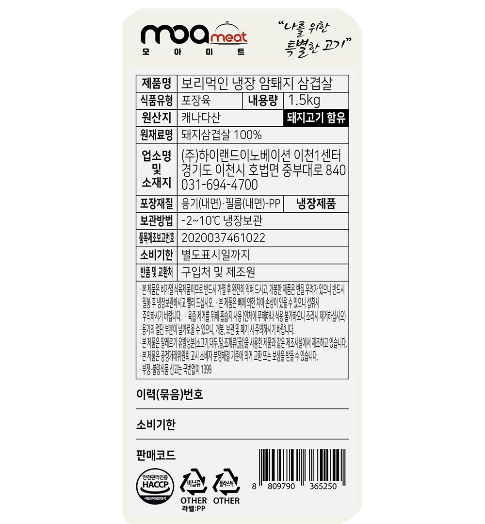 신선도를 유지하기 위해 MAP(Modified Atmospheres Packaging) 기법으로 포장했어요. 용기 내에 산소와 이산화탄소를 채워 고기의 맛과 품질을 유지합니다.