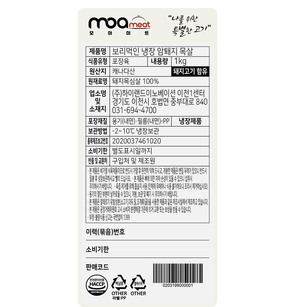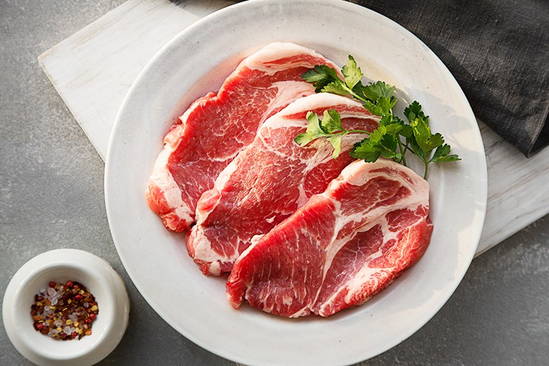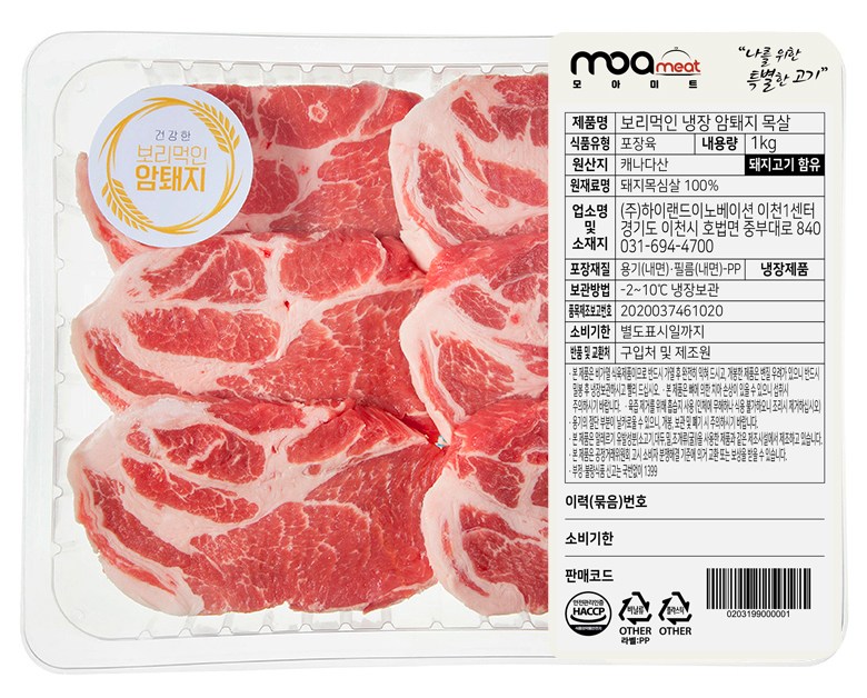 신선한 돼지고기를 담은 모아미트 보리 먹인 냉장 암퇘지 제품으로 맛있는 목살을 드셔 보세요. 고소하고 담백한 감칠맛으로 입맛을 사로잡죠. 스테이크를 만들거나, 찌개에 넣어 먹어도 훌륭한 맛을 선사한답니다.