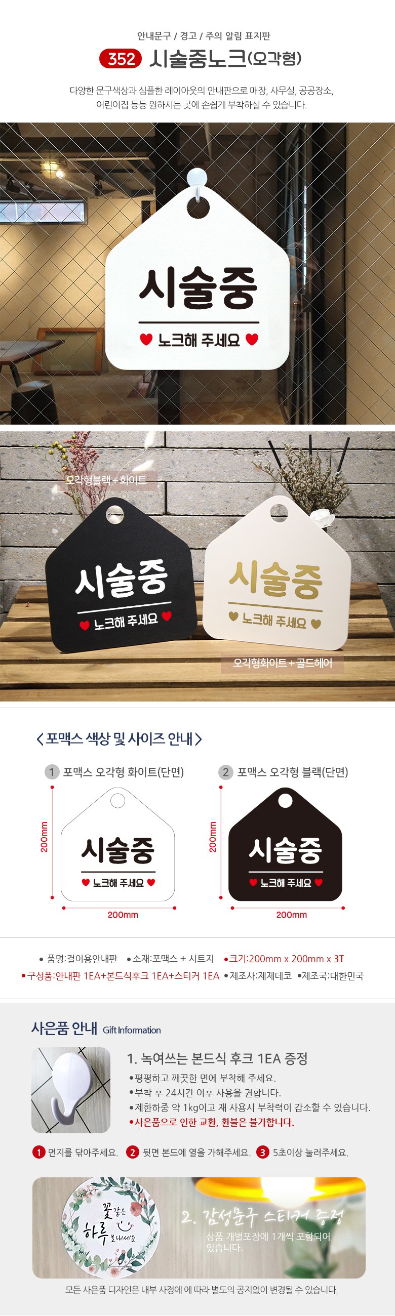 | 품명 및 모델명 | 352시술중노크오각형 단면(포맥스화이트+문구블랙) | 인증/허가 사항 | 해당없음 |