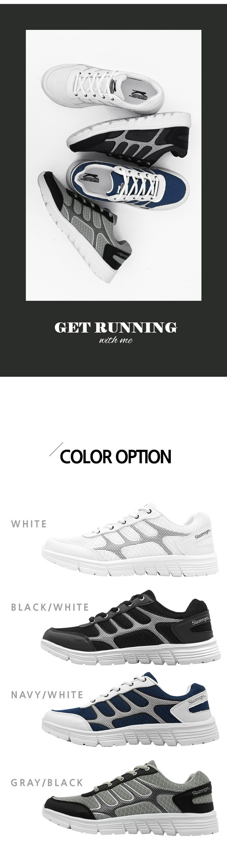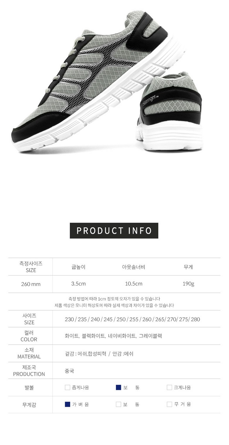 | 제품의 주소재(운동화인 경우에는 겉감,안감을 구분하여 표시) | 겉감 : 메쉬,합성피혁 / 안감 : 메쉬 | 색상 | 블랙화이트,화이트 그레이블랙,네이비화이트 |