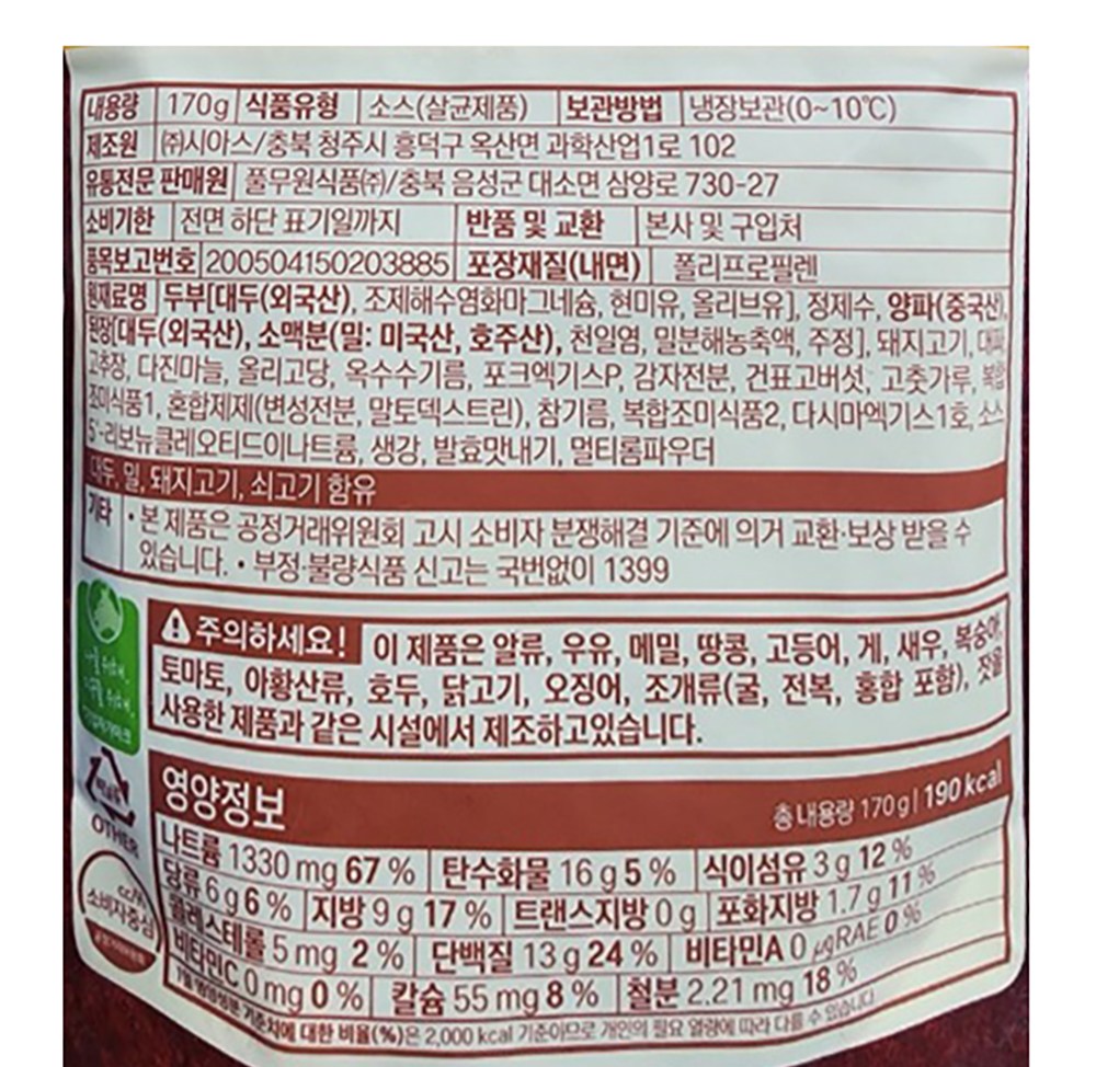 - 소스 종류: 찌개양념