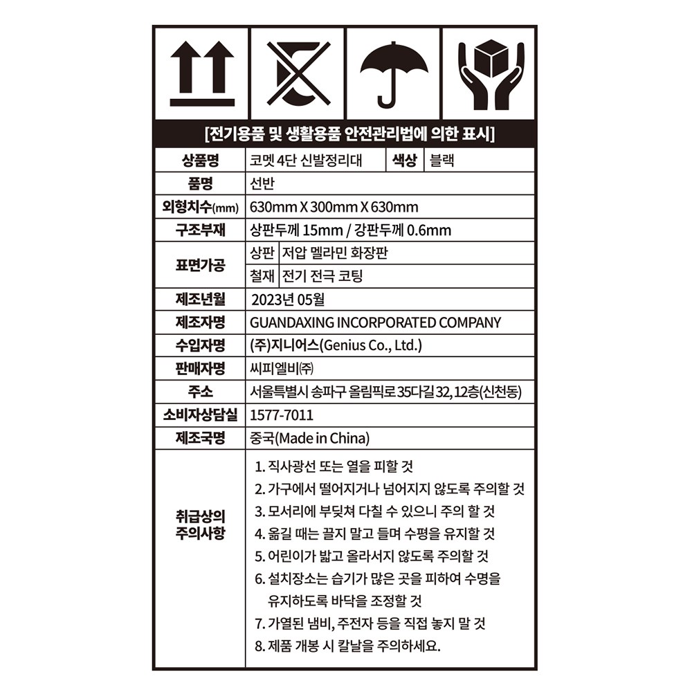 | 품명 | 코멧 4단 신발정리대 블랙 | KC 인증정보 | 해당없음 |
