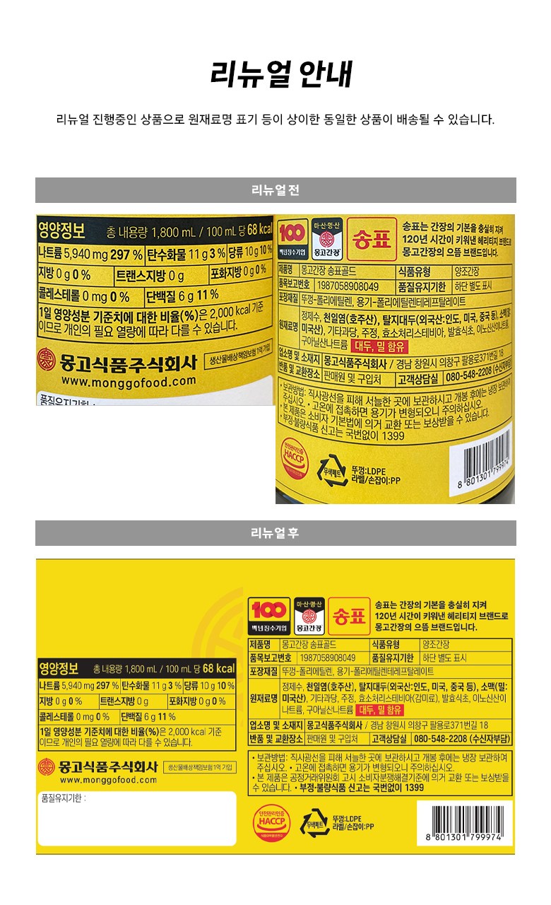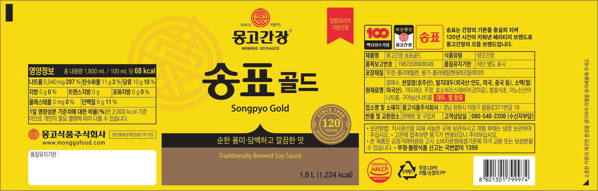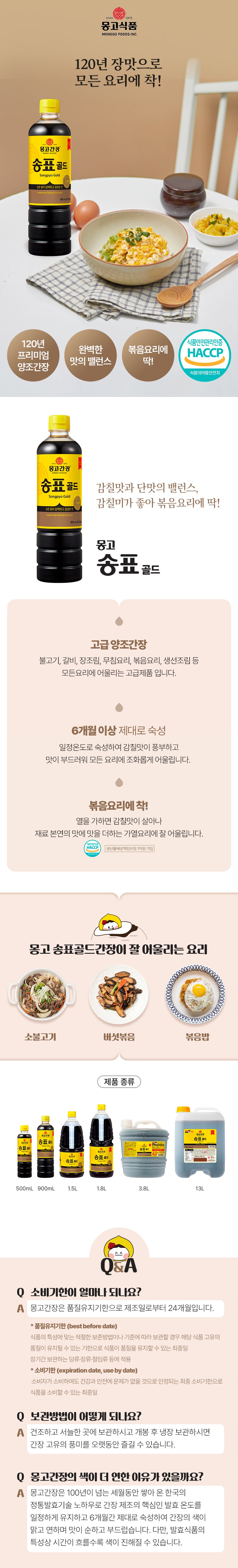 | 제품명 | 몽고간장 송표골드 | 식품의 유형 | 컨텐츠 참조 |