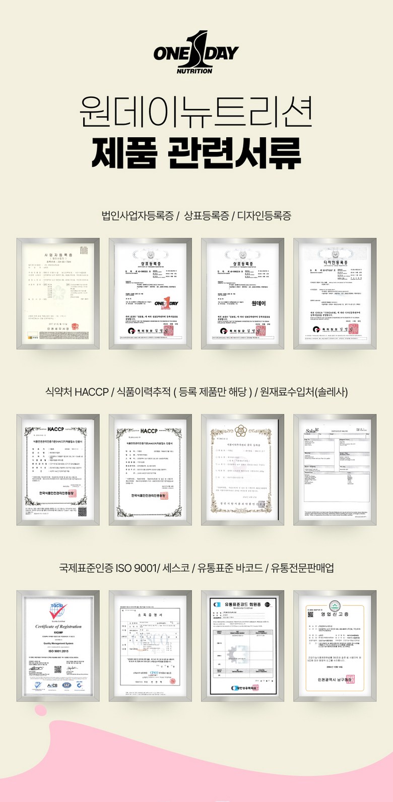 상호/대표자 | (주)원데이뉴트리션 / 손원진 | 사업장 소재지 | 인천광역시 남구 염전로 330 405호(주안동,주안제이타워1차) |
