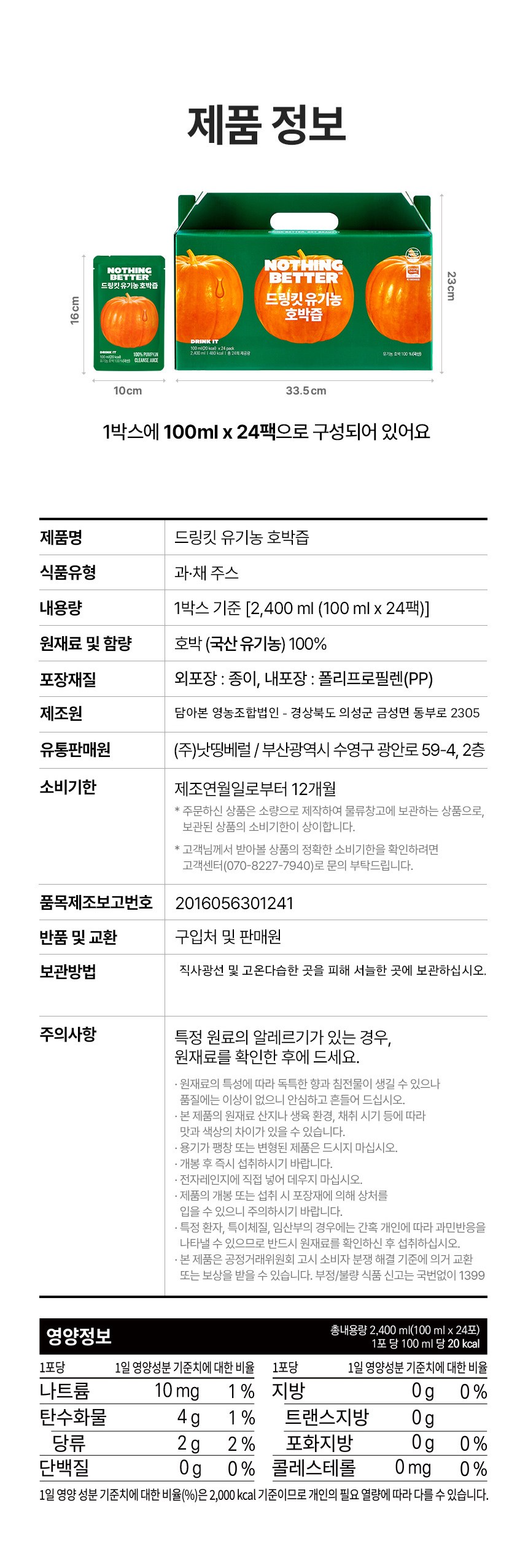 - 개당 용량/중량/정: 100ml
