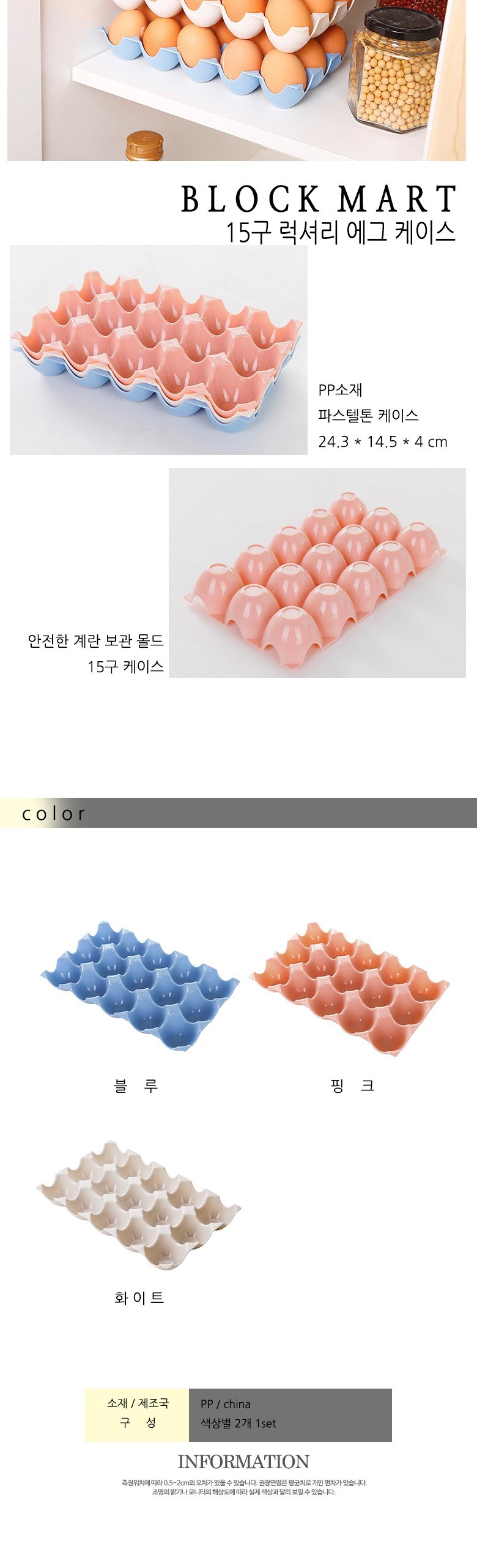 | 품명 및 모델명 | 블럭마트 15구 럭셔리 에그케이스 계란케이스 화이트(2개세트) | 재질 | 플라스틱 |