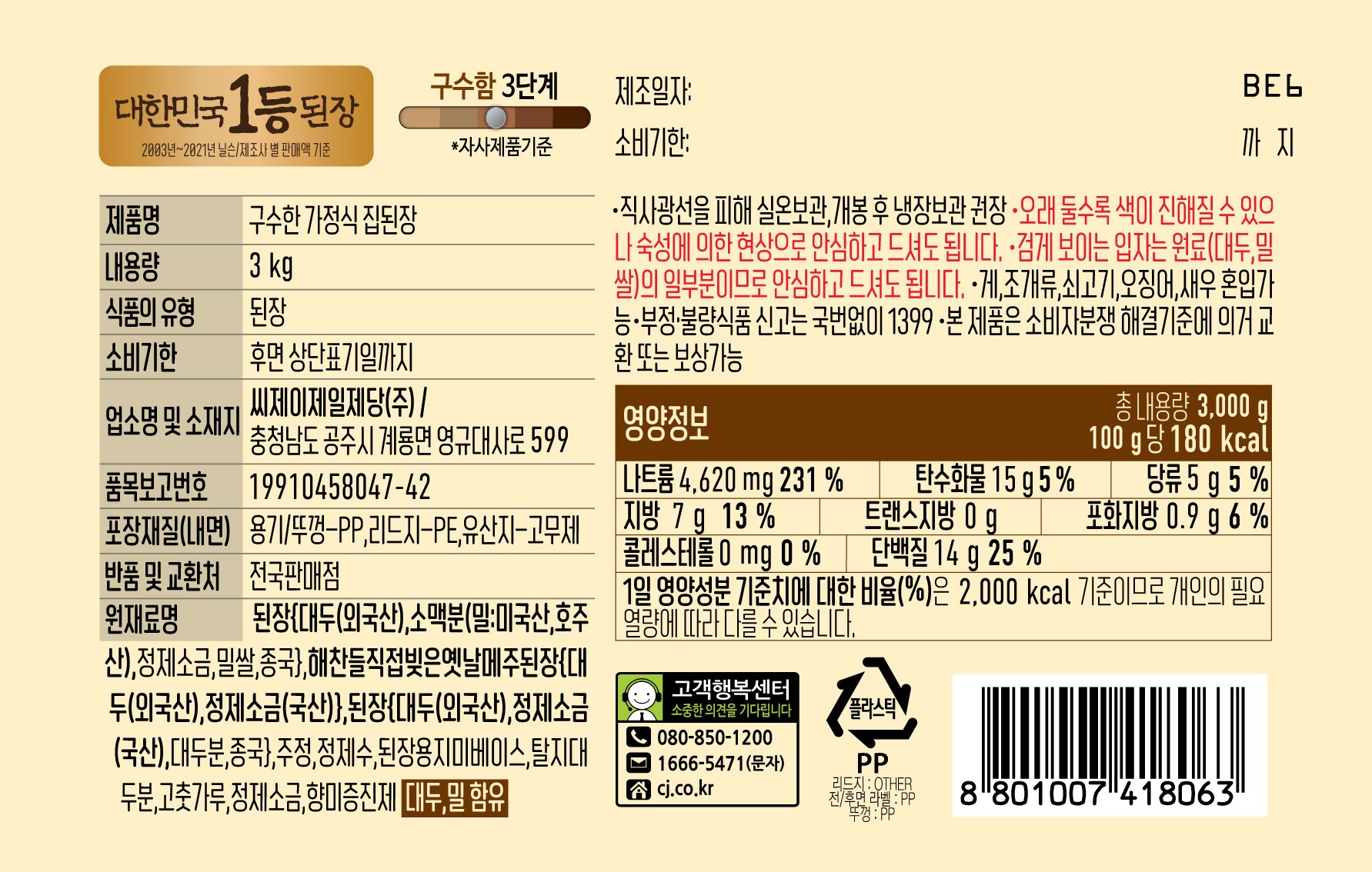 | 제품명 | 구수한 가정식 집된장 | 식품의 유형 | 컨텐츠참조 |