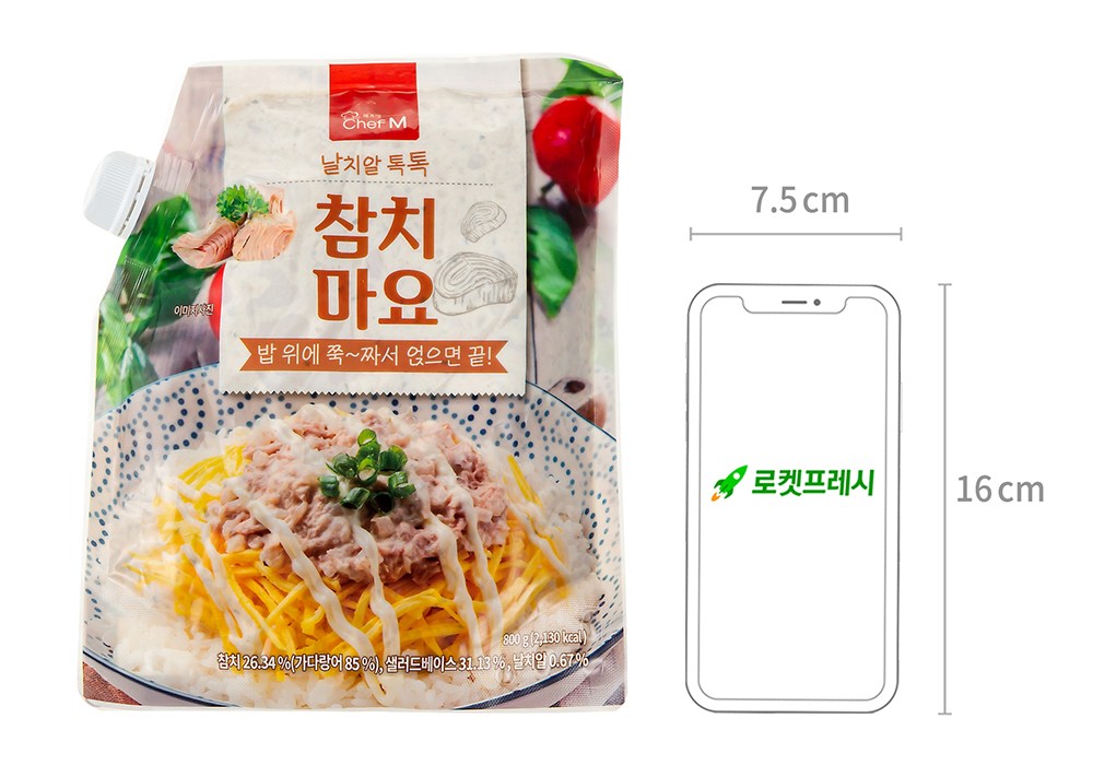 날치알을 더해 톡톡 튀는 식감과 참치와 마요네즈의 고소한 맛을 품은 참치마요를 만나보세요. 쉐프엠 참치마요는 부드럽고 담백하며, 조리 없이 바로 짜 먹을 수 있어 간편한 제품이에요. 파우치 속에 담긴 참치마요를 빵이나 크래커, 샐러드 등 원하는 재료 위에 짜기만 하면 촉촉하고 부드러운 풍미를 더할 수 있죠. 바쁜 아침 든든한 식사대용으로, 아이들이 맛있게 즐길 영양간식으로 준비해보세요.