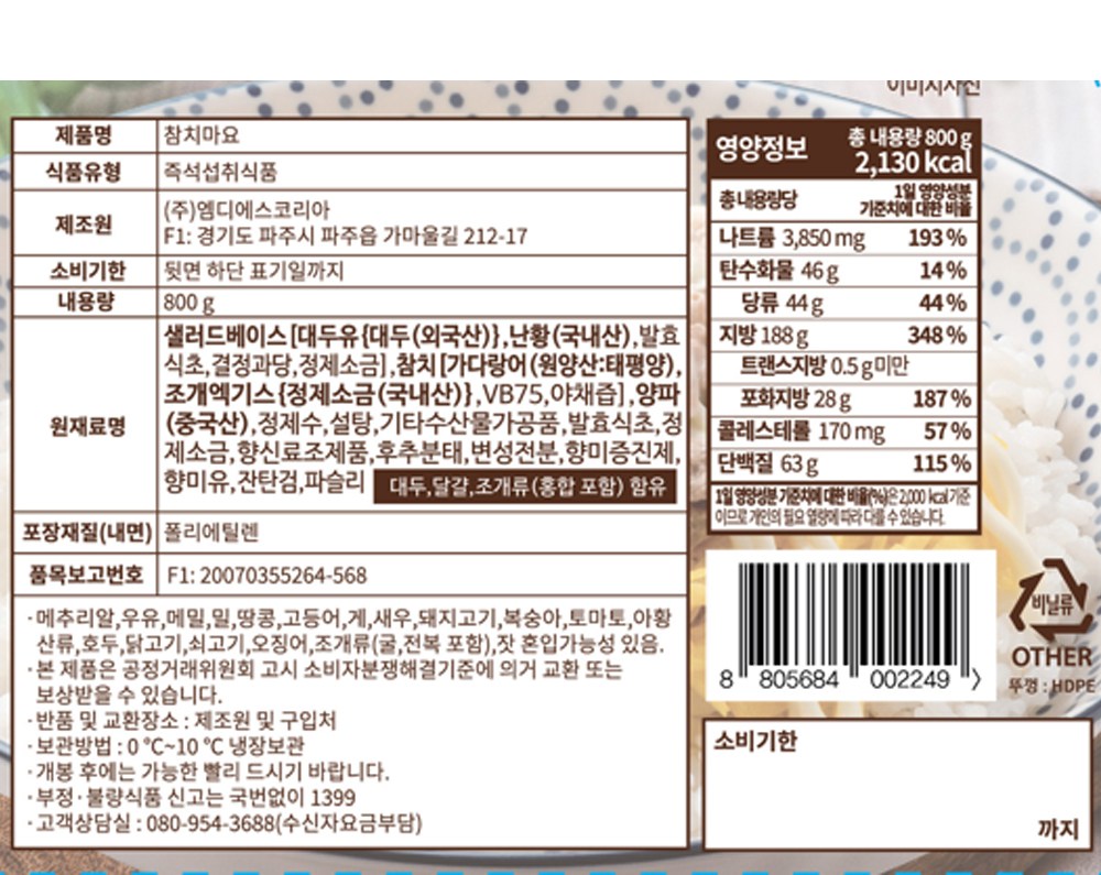 | 제품명 | 참치마요 | 식품의 유형 | 즉석섭취식품 |