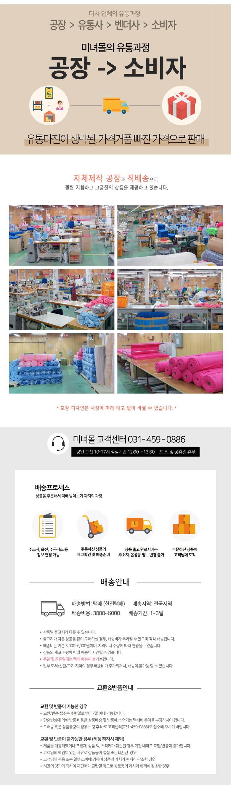 - ㆍ모니터 해상도의 차이로 인해 색상이나 이미지가 실제와 달라, 고객이 단순 변심으로 교환/반품을 무료로 요청하는 경우