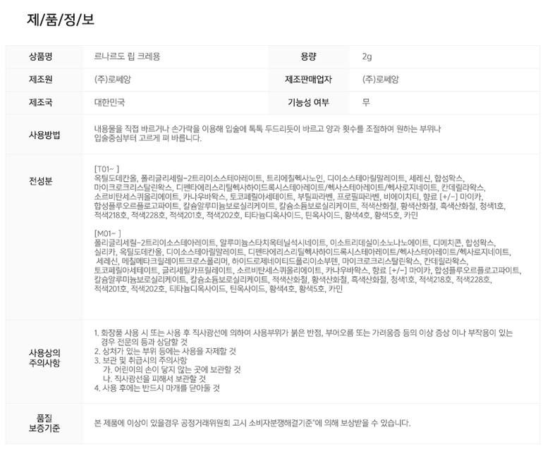 | 용량(중량) | 2g | 제품 주요 사양 | 모든 피부용 |