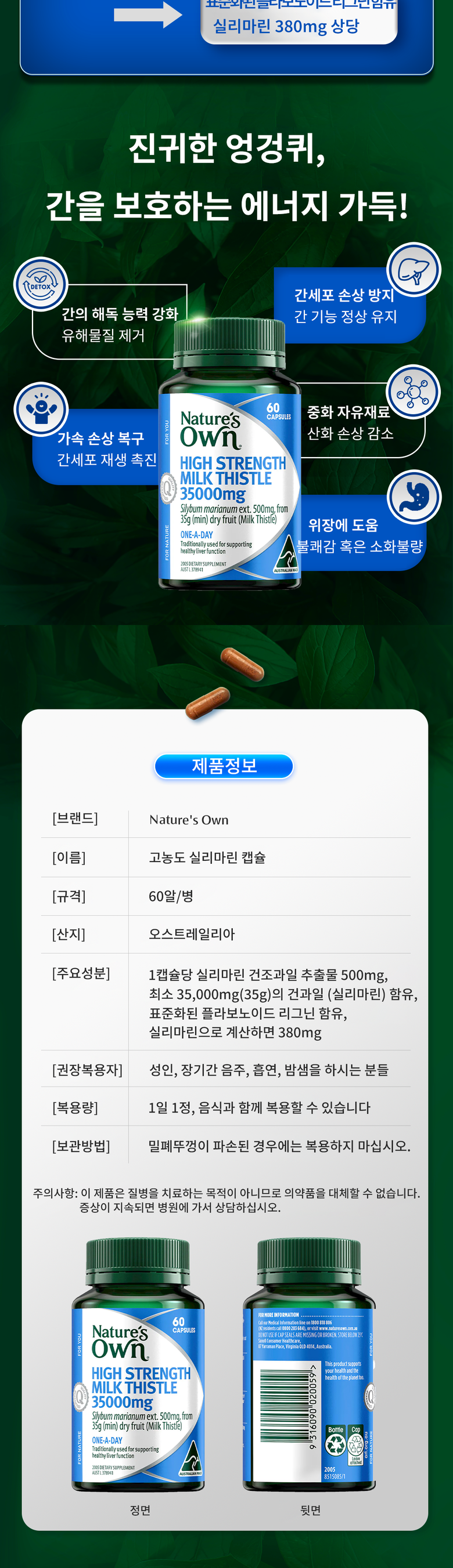 네이쳐스온 하이 스트렝스 밀크시슬 35000mg 캡슐