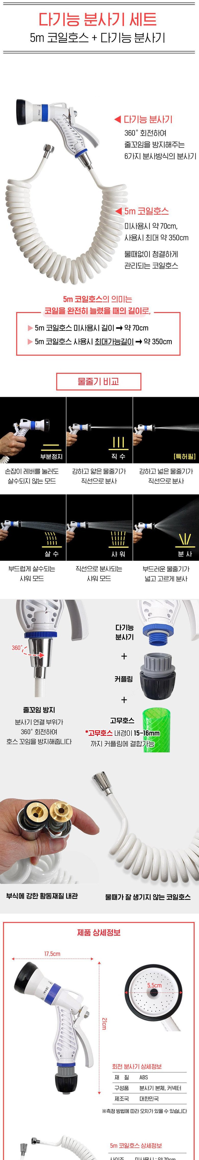 | 품명 및 모델명 | 만능삼촌 베란다 욕실 청소건 다기능분사기, 5m코일호스 | 인증/허가 사항 | 해당없음 |