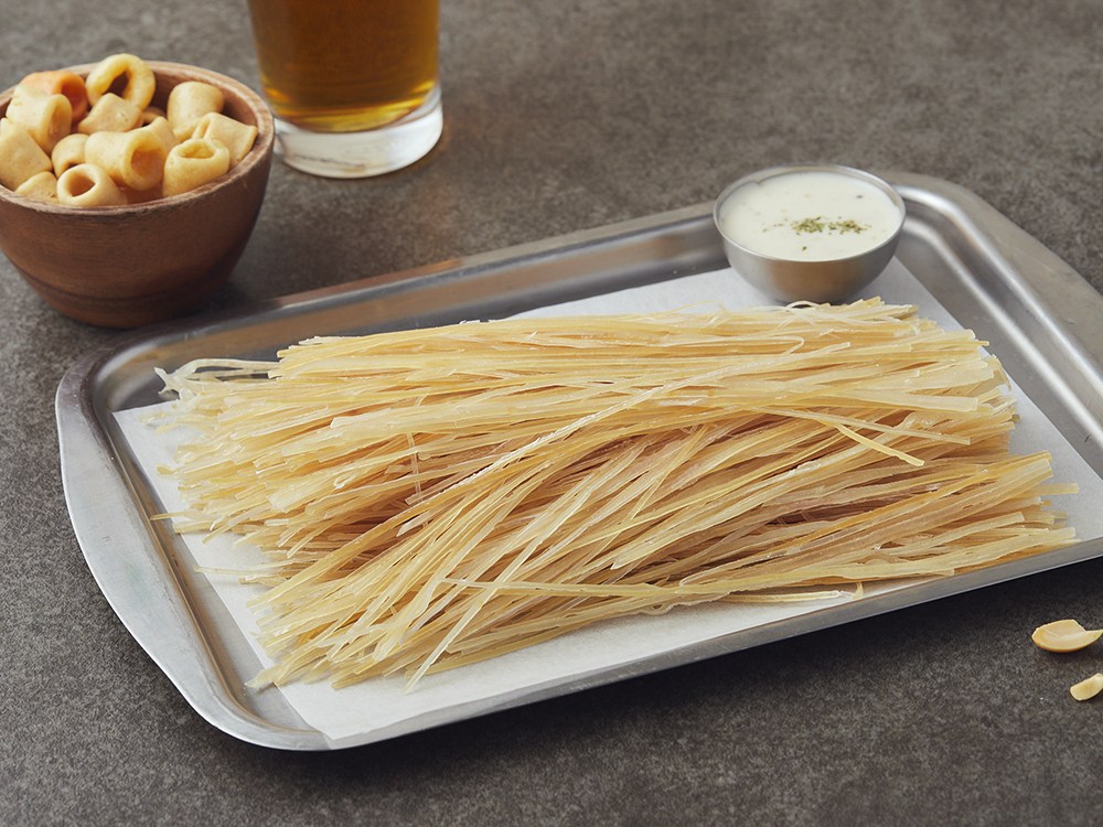 밑반찬을 만들기 좋은 오징어실채예요. 건조 오징어귀를 얇게 썰어내, 쫄깃쫄깃한 듯 부드러운 식감을 즐길 수 있는데요. 짭조름하면서도 깊은 맛이 살아있답니다. 간장이나 고추장 양념에 살짝 볶아 드셔보세요. 씹을수록 감칠맛이 진해져, 밥 한 공기를 뚝딱 비우게 해 줄 거예요.