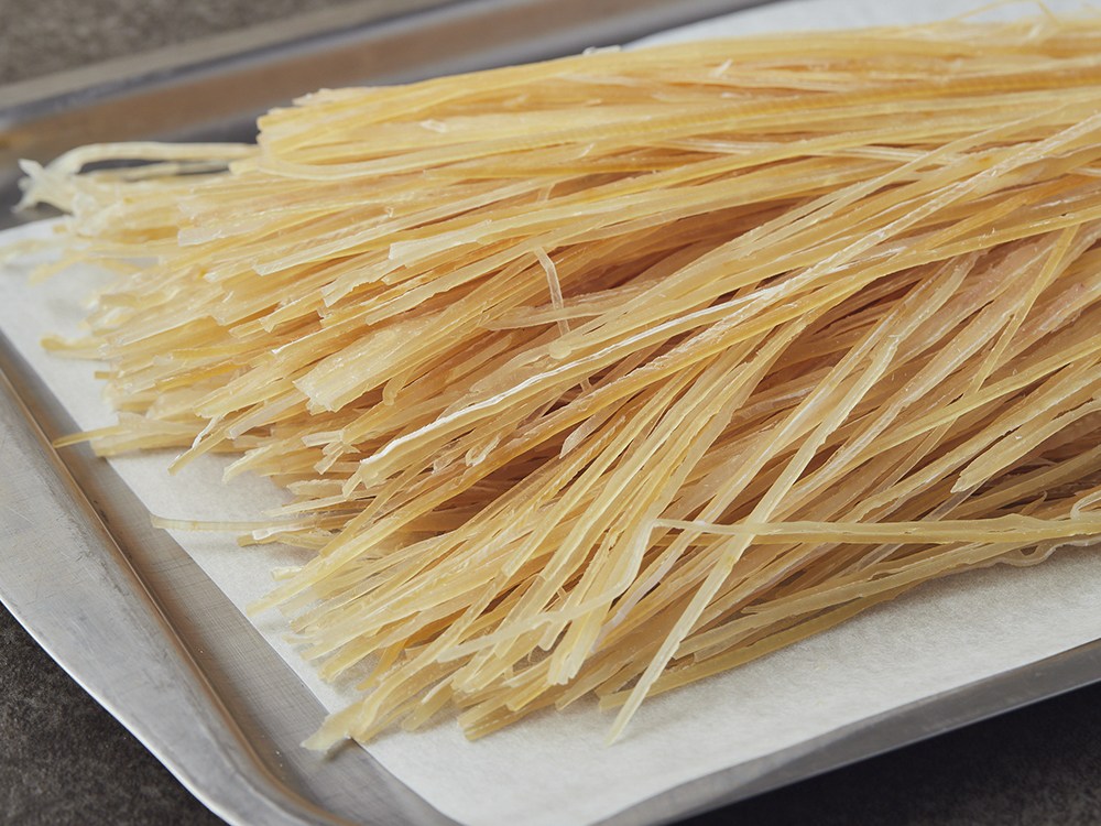 얇게 썰려 있는 오징어실채